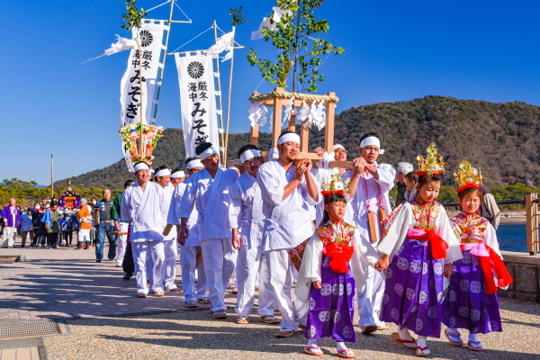 みそぎ終了後は餅まきが行われ、見物客が懸命に餅を拾う光景が見られました。
