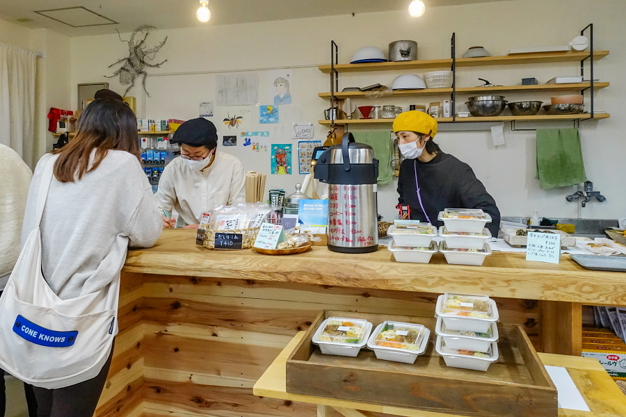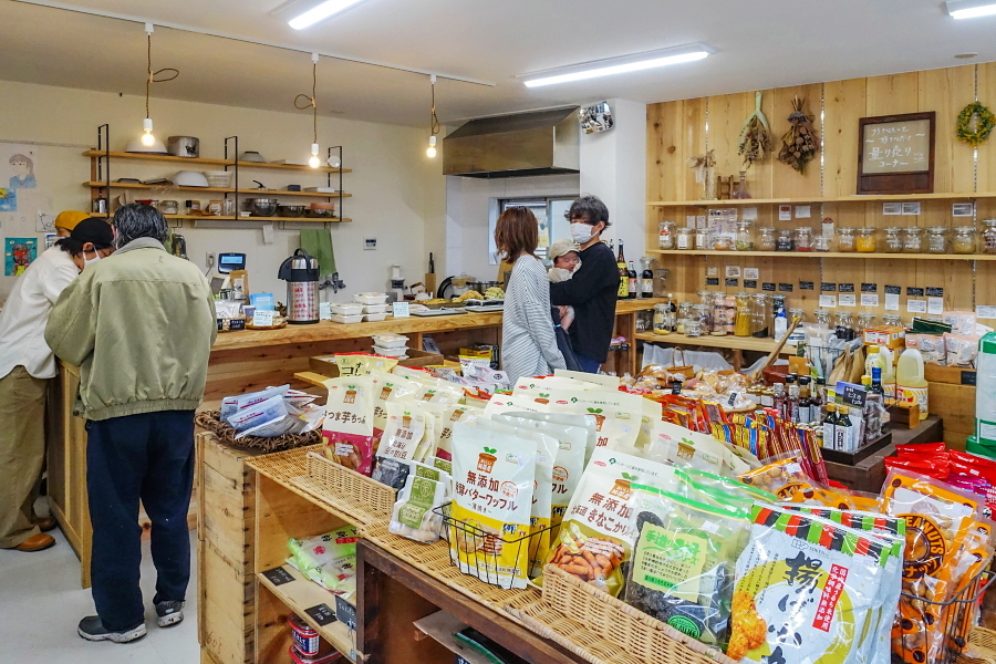 地元を中心としたさまざまな食材を取り扱う店。パンや惣菜も数多く並ぶほか、調味料・乾物などの量り売りも行っています。有機玄米100%の団子が名物です。