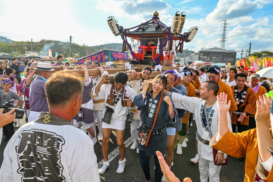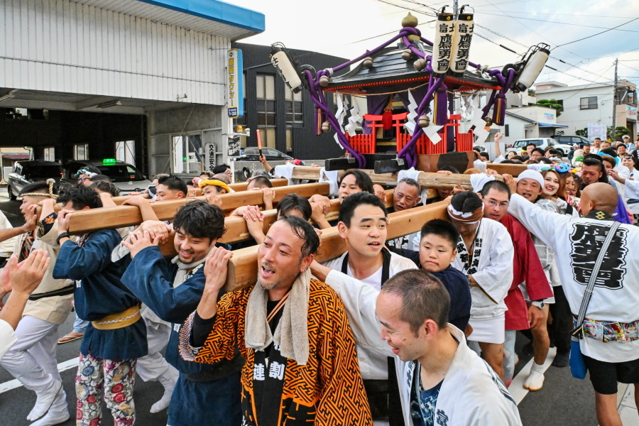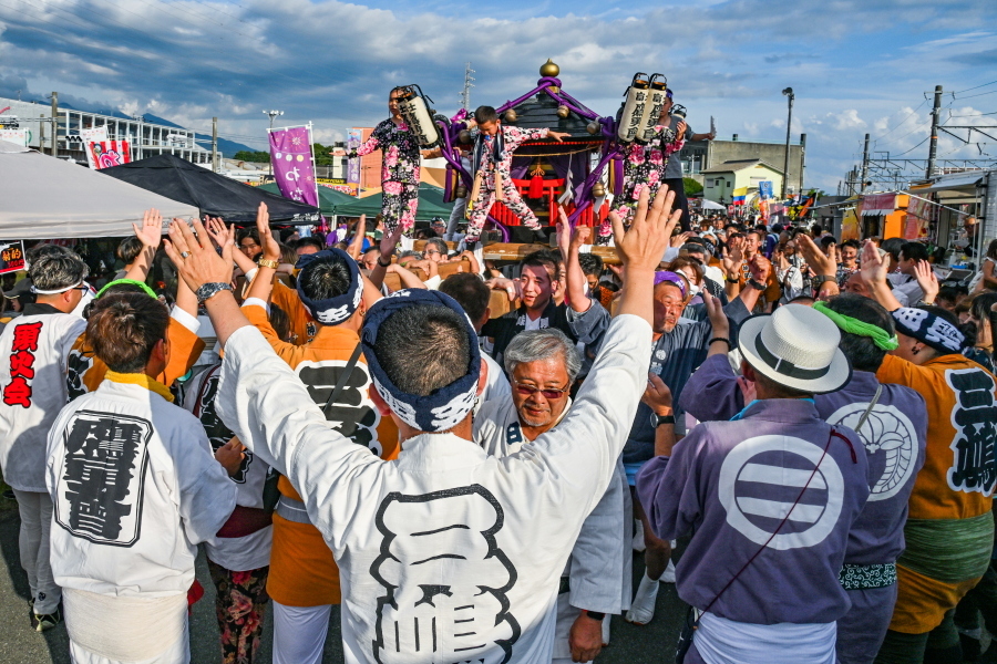ステージのラストは富士市にゆかりのある和太鼓集団「鬼太鼓座」による太鼓演奏が行われ、力強い撥さばきを存分に楽しめました。それに合わせて神輿の宮入りが行われて熱気に満ち溢れ、盛り上がりは最高潮に達しました。