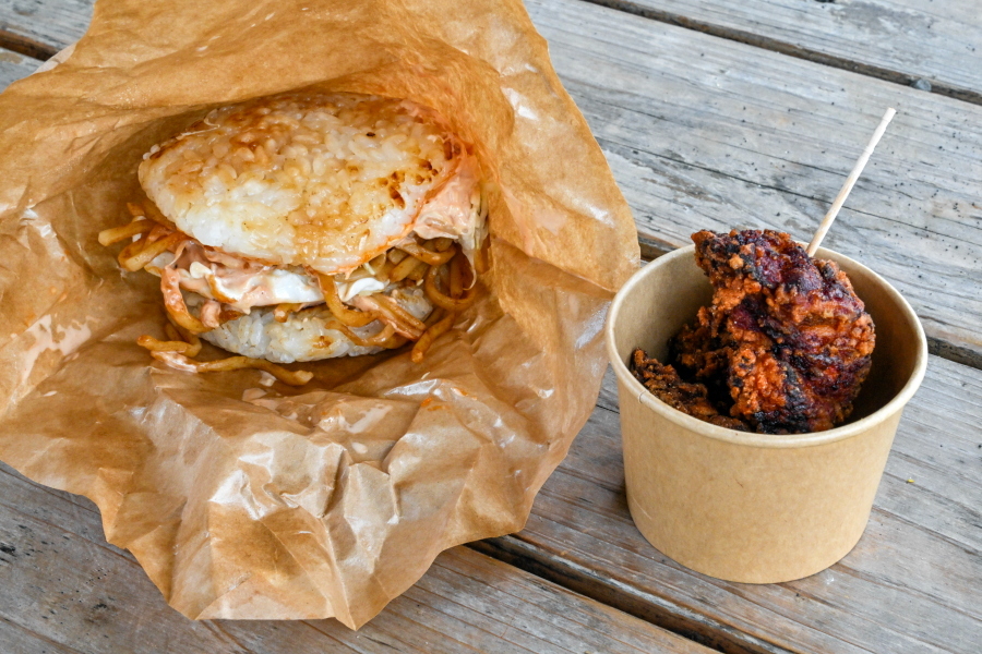 今回のフェスティバルでゲットしたグルメです。順番にらいすぼうる(富士宮市)の「富士山白糸ライスバーガー&唐揚げセット」(富士宮やきそばを挟んだライスバーガーと米粉の唐揚げ)、いわなみキッチン(裾野市)の「キヌアたっぷりひまわりコーンスープ」、イノクラCAFE(御殿場市)の「アスリートシフォン」になります。どれもじっくり味わいました。