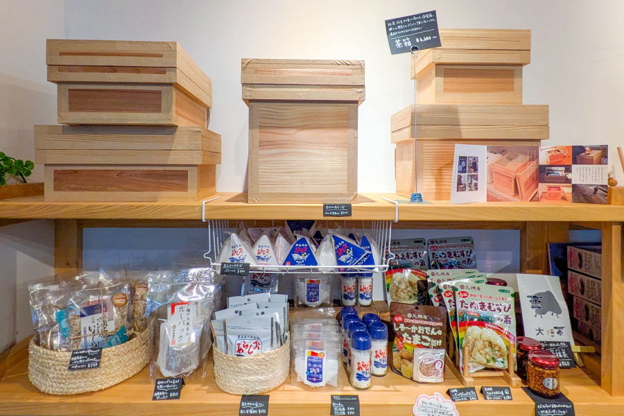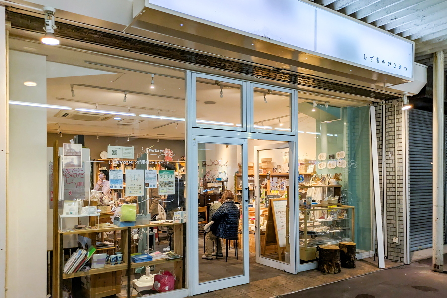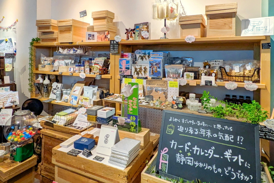 トークイベントが開催された「しずおかのひみつ」は、静岡ならではの雑貨を扱うセレクトショップ。ちょっとした手土産となる商品を扱っているほか、拝見場図鑑や拝見盆・茶箱などお茶に関するグッズも販売されています。また、一箱本棚オーナー制度のシステムを取り入れた「みんなの図書館」(通称:みんとしょ)のコーナーや喫茶が設けられ、コミュニティスペースとしての機能も持ち合わせています。