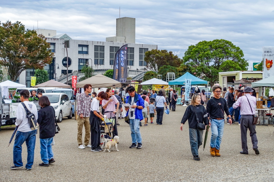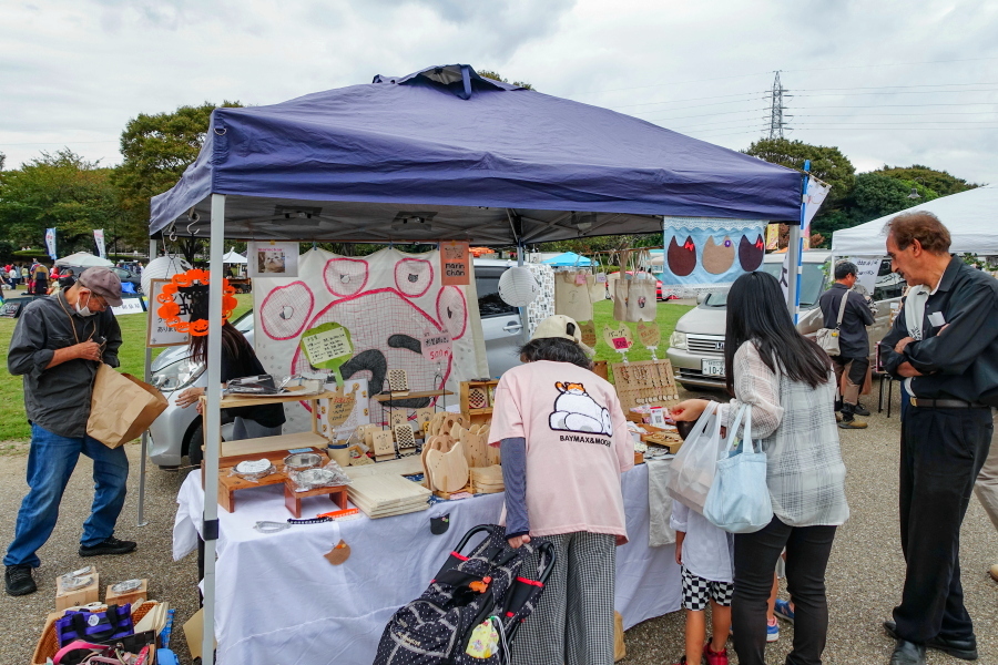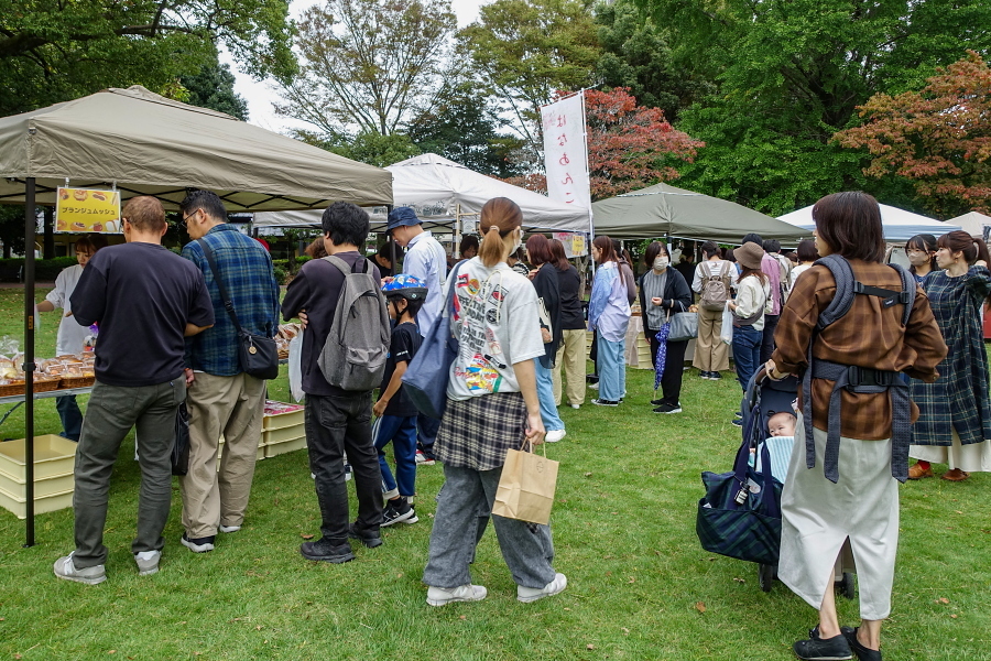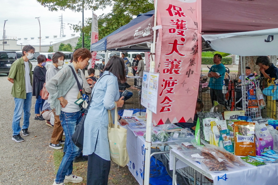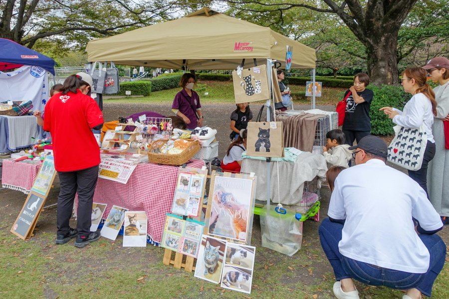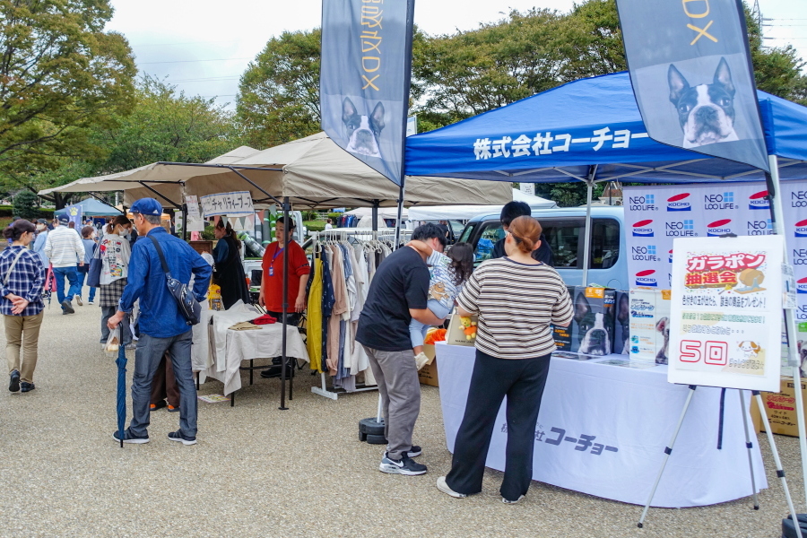 続いて「percheの優しい時間」の模様です。保護犬や保護猫などの保護されている動物たちがいることや、その保護動物たちを大切に保護し、見守り育ててくれている活動者がいることをより多くの方々に知ってもらいたいという思いから始まった譲渡会併設型のマルシェイベント、公園西側のイベント広場を会場に飲食物・雑貨等の出店や保護犬・保護猫のブースが並び、思い思いにイベントを楽しむ光景が見られました。