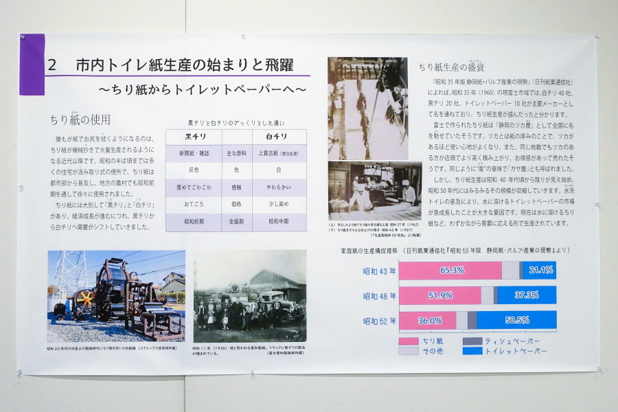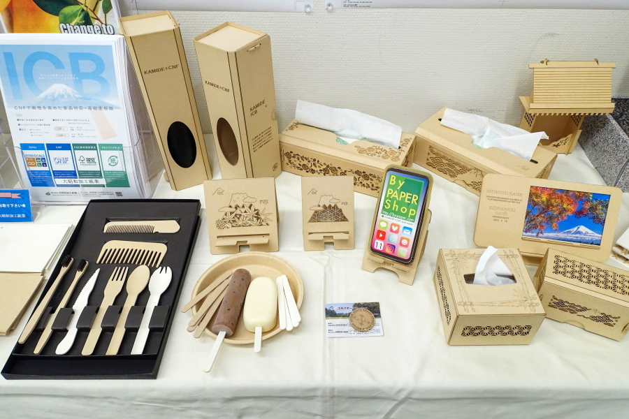 会場では、トイレットペーパーを中心とした富士市の紙産業についての紹介展示、世界各国で使われているトイレットペーパーの展示、災害時に活躍する紙製品の展示、富士市内の製紙関連企業による製品等の展示、植物由来の新素材であるCNF(セルロースナノファイバー)に関する展示などが見られるほか、学生による紙に関する体験コーナーもあります。開催期間は本日(12月6日)まで、時間は9時30分〜15時までです。