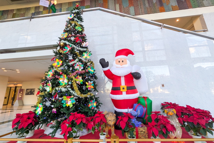ガレリアでは、この時期恒例の巨大クリスマスツリーとサンタが飾られ、クリスマスムードを演出しています。